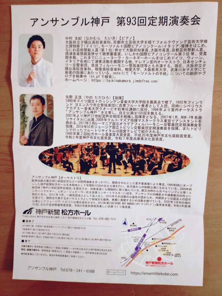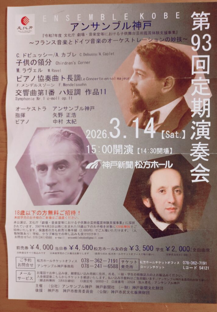 松方ホールでクラシック演奏会『アンサンブル神戸定期演奏会』です。
